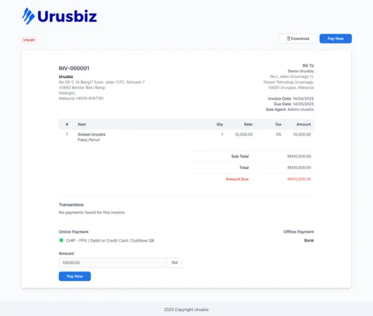 Urusbiz dibina khas untuk usahawan di Malaysia yang perlukan sistem pengurusan perniagaan lengkap dan mudah guna.